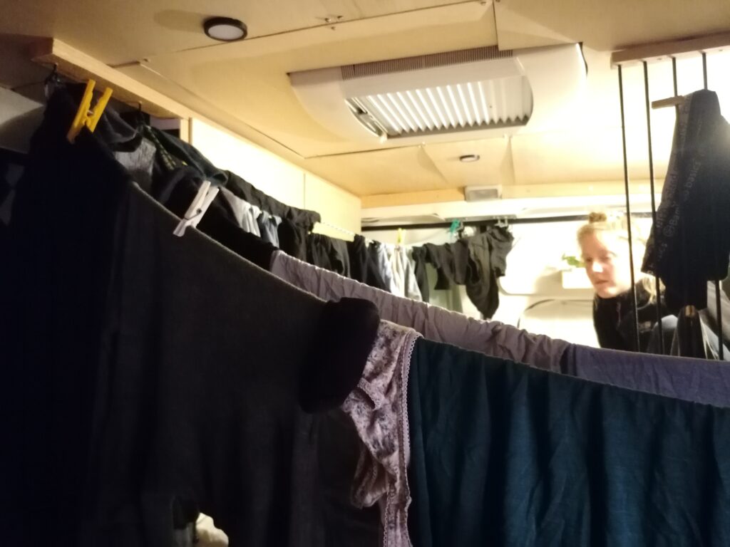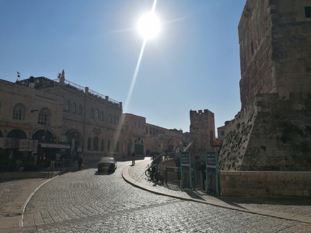 Am 23. Januar erreichen wir Jerusalem am frühen Abend. Mehr notgedrungen kämpfen wir uns noch durch den dichten und stressigen Verkehr, denn: Wir haben einiges an Campingschuld angehäuft, Der Abwasserbehälter ist voll, Frischwasser gibt es nur noch wenig und die Abwasch ist voll mit benutztem Geschirr, das wir aufgrund des vollen Abwasserbehälters nicht abwaschen können. Wir hatten zwar den Tag noch zum Duschen genutzt brauchten jedoch nach 3 Wochen dringenst mal wieder einen Waschsalon. Die gab es jedoch leider nur nahe dem Stadtzentrum von Jerusalem. Die Parkplatzsituation war also auch entsprechend schlecht. Vor allem für uns, da wir mit deutschem Kennzeichen die israelische Parking-App nicht verwenden können und somit noch nicht einmal für die Parkplätze zahlen könnten selbst wenn wir wollten. Nach etwas suchen finden wir schließlich doch noch etwas Platz, wo wir unsern Bus abstellen können, wobei uns nicht klar ist, ob wir nicht zu sehr an der Kreuzung stehen oder ob Parken dort überhaupt erlaubt ist. Aus Sorge abgeschleppt zu werden und mit frischgewaschener Wäsche in den Händen ohne Auto in Jersualem zu stehen bleibe ich am Auto und Julie geht zum Waschsalon. Natürlich war die Besorgnis völlig übertrieben und niemand kommt und kontrolliert die parkenden Autos. Mir fällt jedoch auf, das mehrere Israelis unser Nummernschild kritisch beäugen. Wir vermuten im Nachgang, dass sie nicht besonders viele ausländische Kennzeichen sehen oder womöglich unseres mit einem palästinänsischen verwechseln. Die sind nämlich auch weiss statt gelb und dürfen (wahrscheinlich) in den meisten Teilen Israels gar nicht fahren. Der Gedanke macht uns auch nicht unbedingt ein besseres Gefühl. Wie dem auch sei, nach einiger Zeit kommt Julie zurück mit der Wäsche. Natürlich hatte der Trockner nicht gut funktioniert und alles ist noch nass. Wir spannen also im Bus die Wäscheleine auf und machen es dadurch noch ein Stück gemütlicher -.-. Glücklicherweise, finden wir noch einen Gratisstellplatz für die Nacht nahe der Altstadt und verbringen dort eine ruhige 1. Nacht.