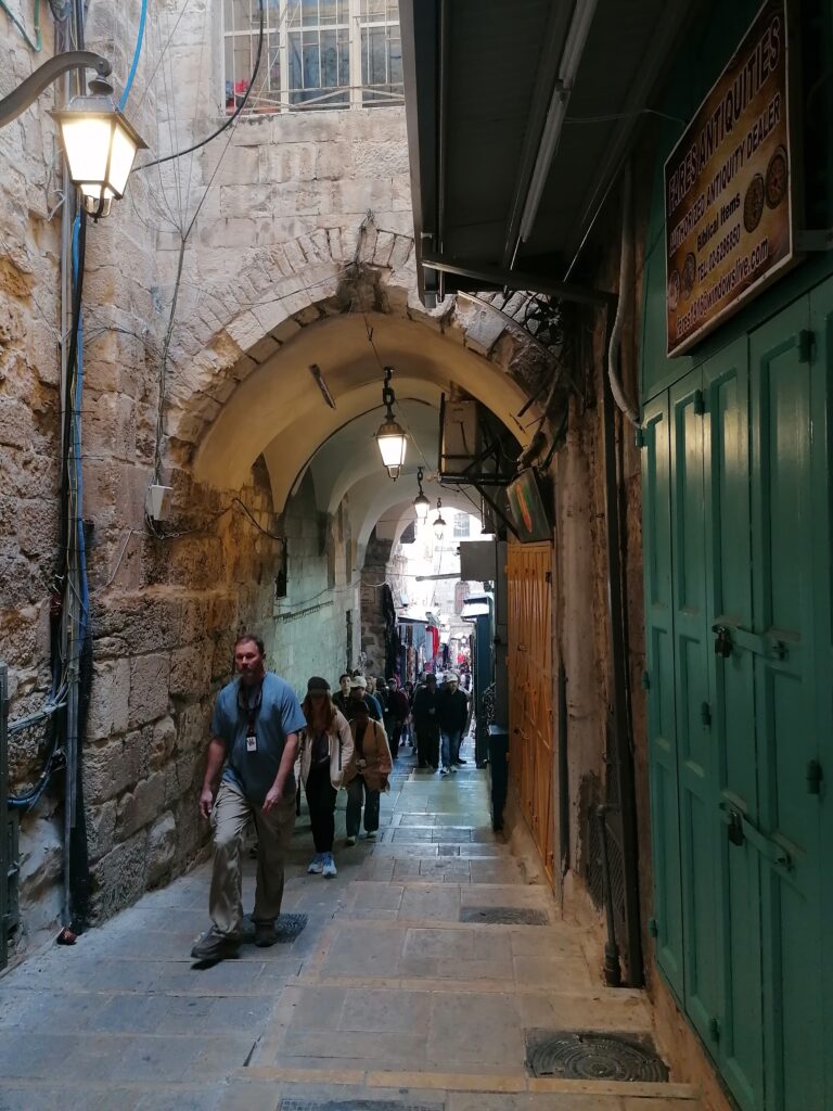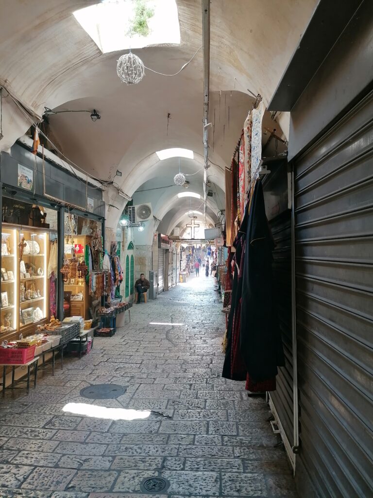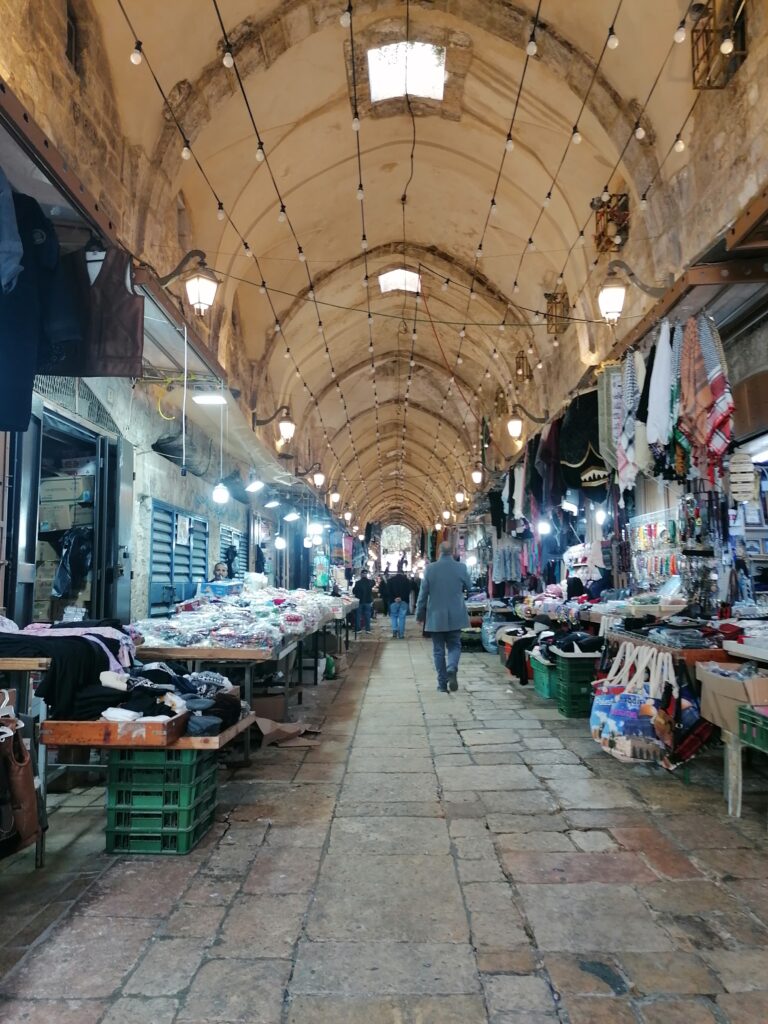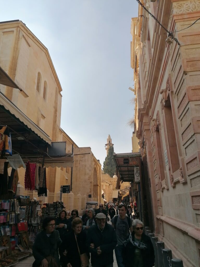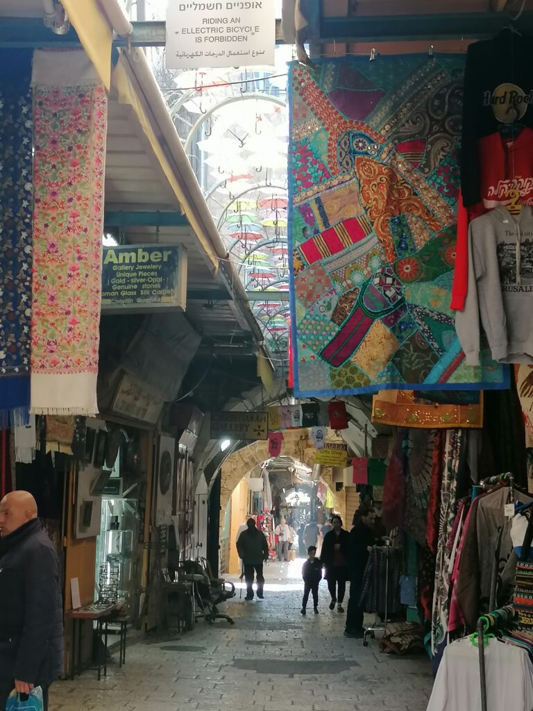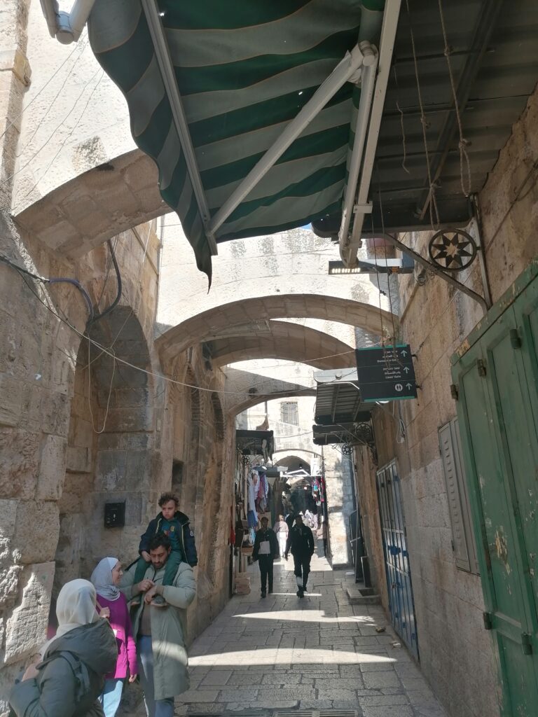 Am nächsten Morgen schauen wir uns Jerusalem an. Die Altstadt zu sehen ist ein besonderes Erlebnis. Man kann sich vorstellen wie seit 1000en von Jahren Menschen durch die engen Gassen zwischen den Verkaufständen umherzogen – auch wenn die Esel von einst mittlerweile durch kleine Traktoren ersetzt wurden. Auch konnte man früher wohl noch keinen Schokoweihnachtsmann dort kaufen.