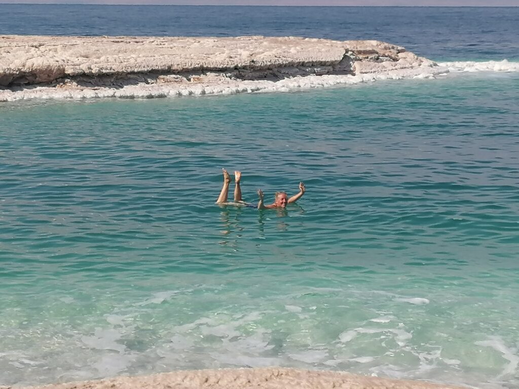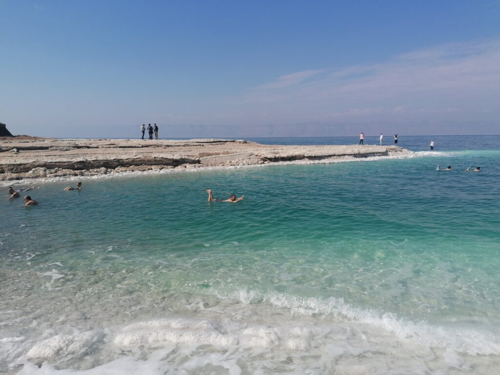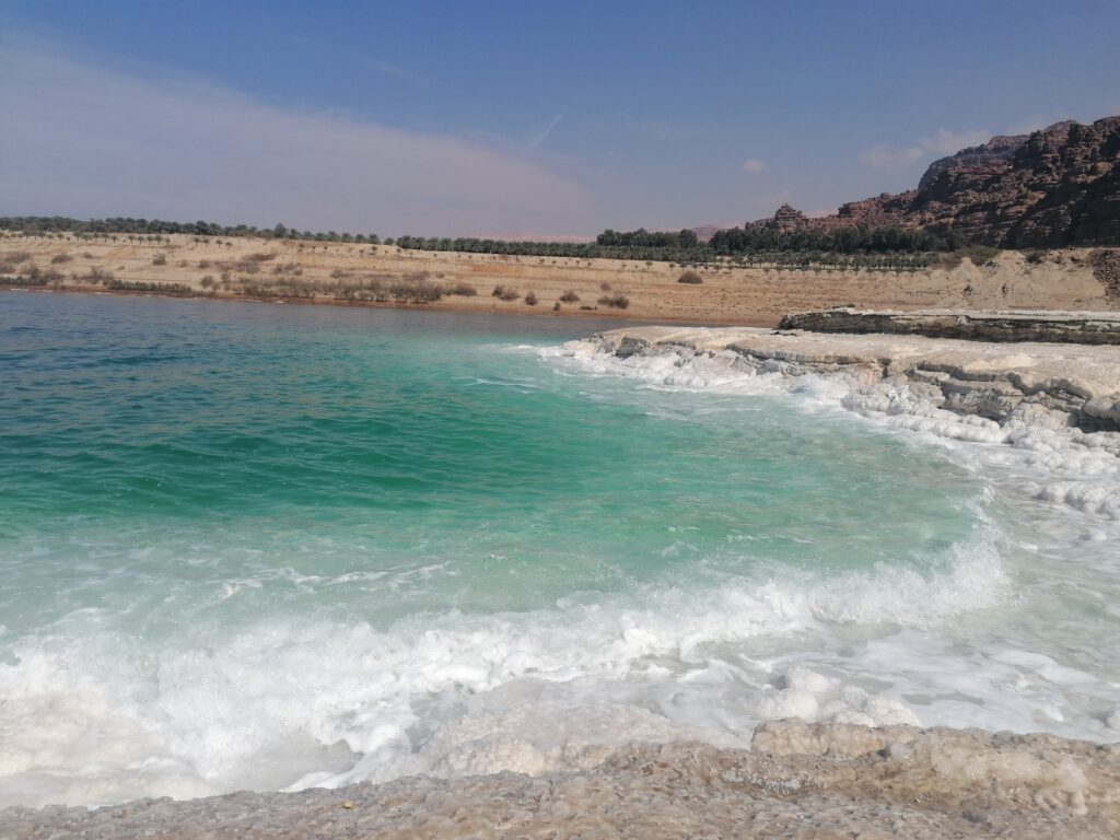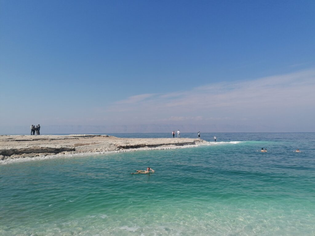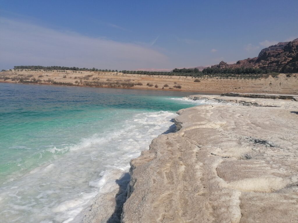 Von Petra fahren wir weiter über die Berge Jordaniens Richtung der Hauptstadt Amman. Unser Weg führt uns durch aus ca 8° in Petra über jordanische Bergdörfer auf 1000m Höhe mit 3° vorbei übriggebliebenen Schneehäufen in der Wüste. Wir können es nicht so recht glauben und wollen auch nicht bei den Temperaturen übernachten. So fahren wir noch weiter bis kurz vor die Küste des toten Meeres. Über steile Bergstraßen verlieren wir schnell wieder 1000 Höhenmeter und finden schließlich einen Schlafplatz mit noch 14° C bei Nacht. Am nächsten Tag geben wir dem Baden im toten Meer noch eine Chance, nachdem auf israelischer Seite es ja eher ein Planschen in einer Brühe gewesen war. Auf jordanischer Seite gefällt es uns deutlich besser.
