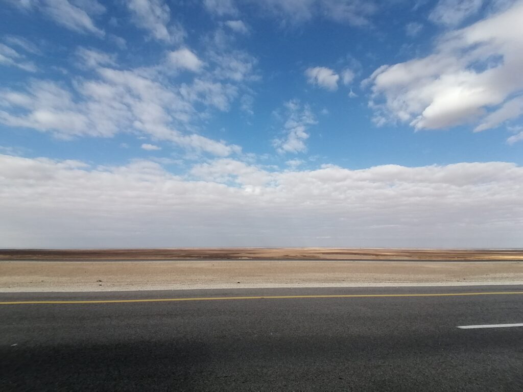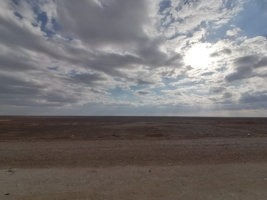 Bestens vorbereitet machen wir uns auf den Weg nach Saudi Arabien. Die Straße dorthin ist faszinierend auf ihre eigene Art und Weise und gibt einen Vorgeschmack auf große Teile Saudi Arabiens. Über mehrere Stunden fahren wir durch eine Landschaft die man sehr gut als “Nichts” bezeichnen kann. Als hätte man den Ort bei der Erschaffung vergessen oder keine Lust mehr gehabt sich etwas Neues auszudenken. In 360°, bis zum Horizont ist der Boden flach und bedeckt mit größeren und kleineren Steinen.