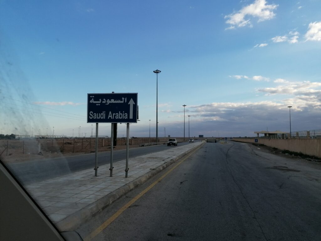 Auf dem Weg befüllen wir unseren mittlerweile fast leeren Tank mit dem Reservekanister aus Israel und räumen unseren Bus auf. Wir halten es für das Beste für den guten Eindruck alles aufzuräumen und sauber zu halten. Außerdem sollten etwaige kritische Gegenstände (z.B. Kletterausrüstung) so verpackt sein, dass es dem durchschnittlichen Grenzbeamten zu mühsam ist reinzuschauen. Also alles irgendwie in Rucksäcke und mit Spanngurten festzurren. Wir sind schon gespannt, was uns dieses mal erwartet und erreichen am Nachmittag die Jordanisch – Saudische Grenze.