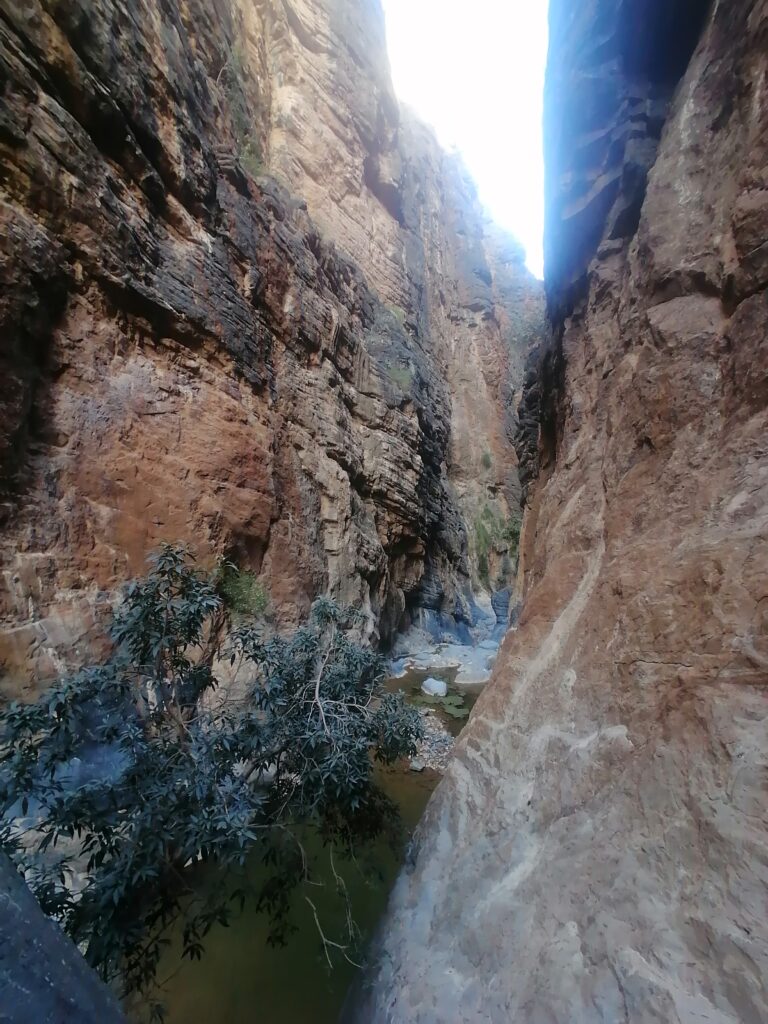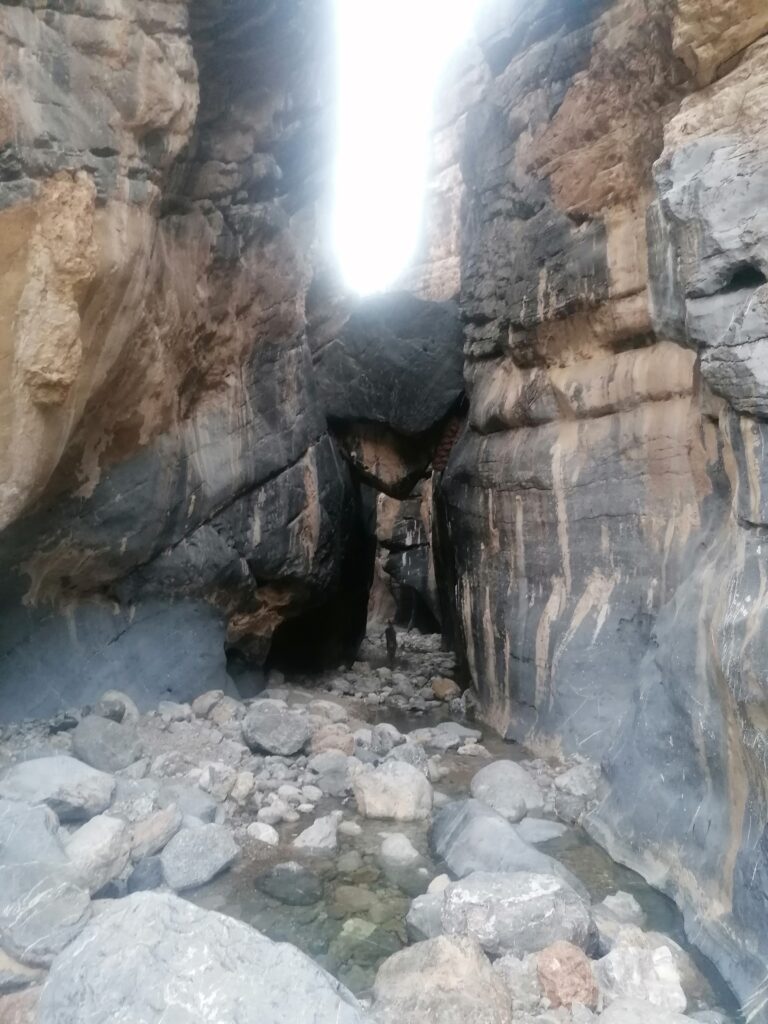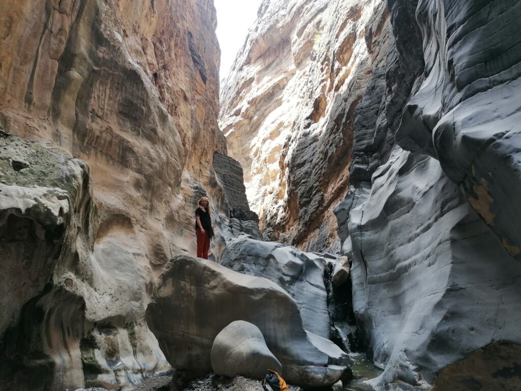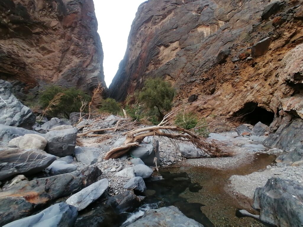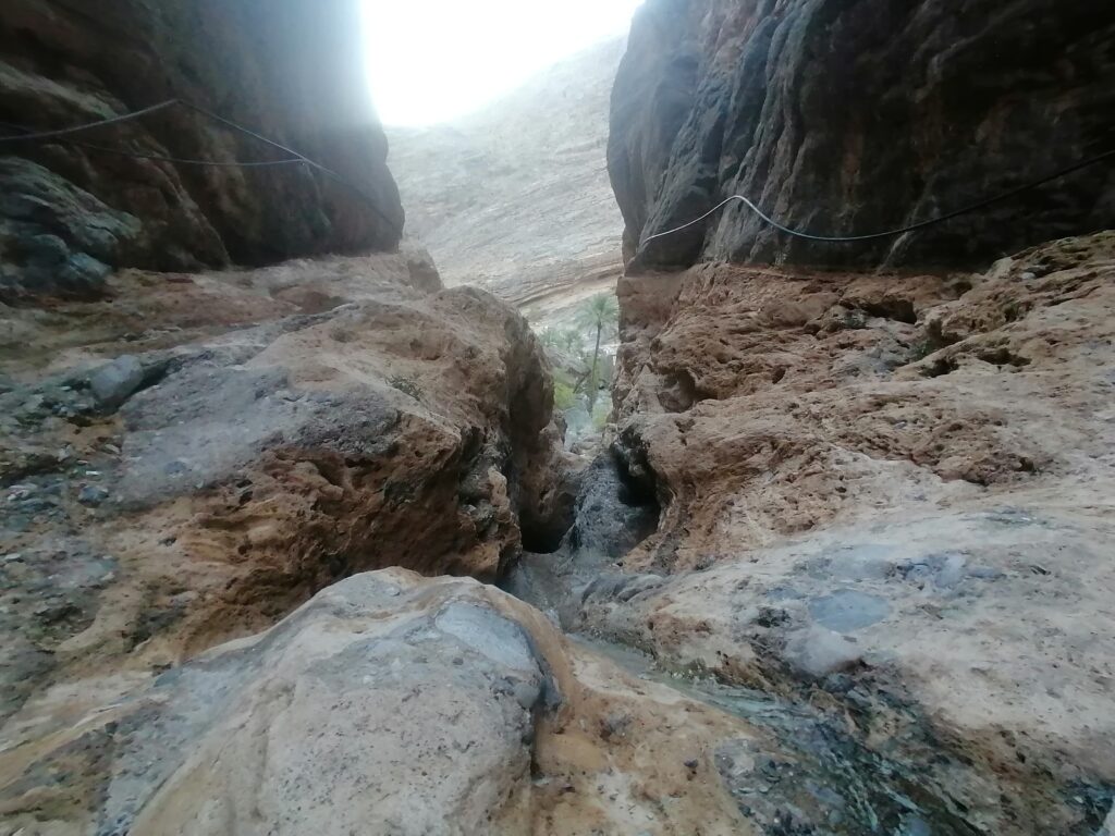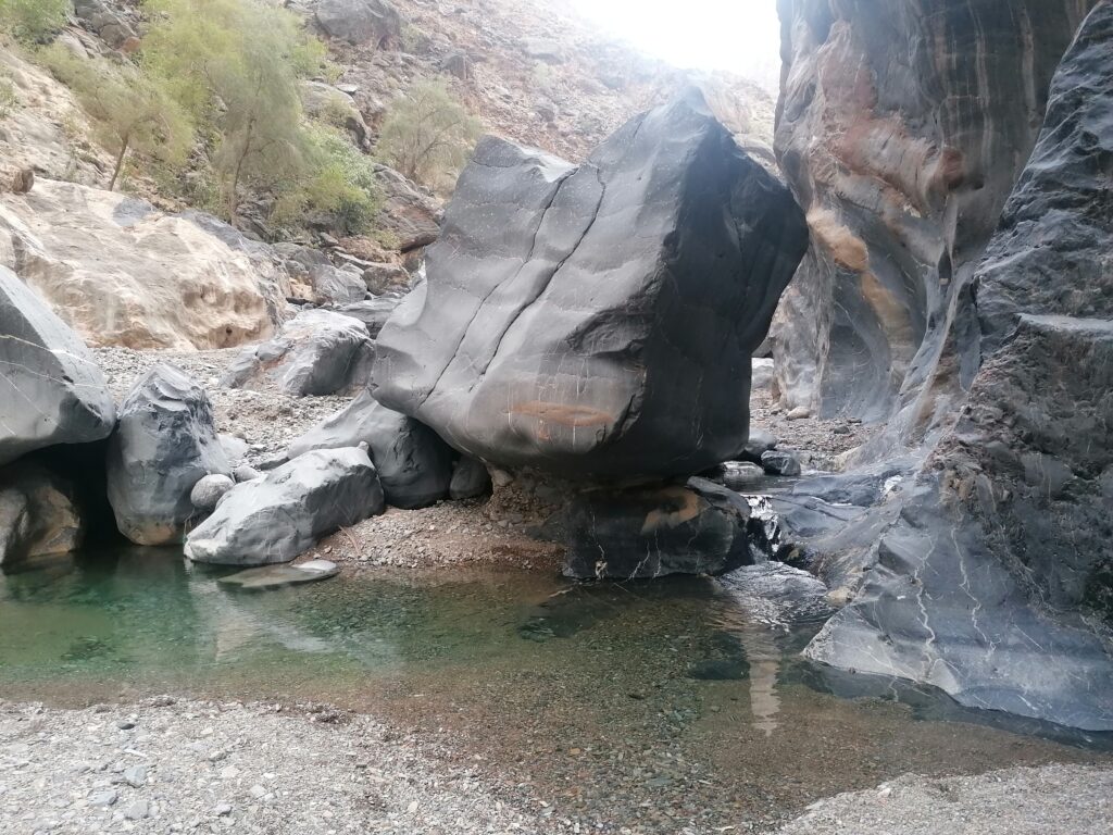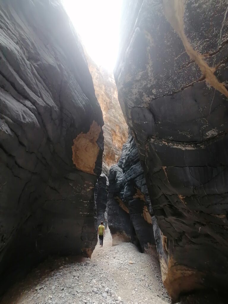 Wir verbringen einige Tage am Snake Canyon und erkunden diesen von allen Seiten, gehen Klettern und entdecken das kleine malerische Gebirgsdorf Badi Seet, das inmitten der kargen Landschaft eine grüne Oase bildet. Für Erfrischung sorgen enge Felsschluchten mit kühlen Wasserfällen und natürlichen Becken. Alles in allem ist das Gebiet einer der Höhepunkte unserer Oman Reise und wenn wir nun feststecken würden, hätte es sich wohl auch gelohnt.