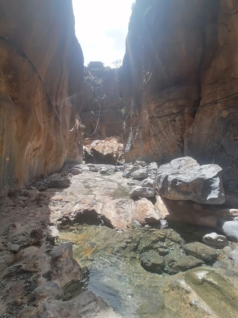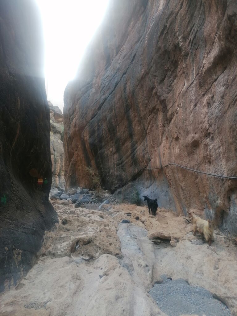 Auf Google Maps hatte wenige Stunden zuvor alles viel einfacher ausgesehen. Der Bergstraße 20 km folgen bis zu unserem gewählten Ziel, dem uns empfohlenen Snake Canyon unlängst des Dorfes Badi Seet, der auch Klettermöglichkeiten bieten sollte. Spätestens als am Shorfet Al-Alamein Pass auf 2000 hm die Teerstraße in eine Schotterpiste übergegangen war hätte ich jedoch skeptisch werden sollen. Vielleicht hätte ich auch Julies: “Bist du sicher, dass das der Weg ist?” oder die Tatsache, dass sie sich ein paar Minuten später weigerte weiterzufahren ernster nehmen sollen. Mir war es lieber gewesen Kontrolle über das Fahrzeug zu haben, als aus Angst vor den Abgründen, die sich uns auftaten nur die Hände in den Beifahrersitz zu krallen. Auch hatte ich Bedenken gehabt, ob wir die gerade hinabgefahrene Steigung überhaupt je wieder raufkommen würden. Irgendwie kann das doch auch nicht die einzige Zufahrt zu den Dörfern rund um den Snake Canyon sein hatte ich mir eingeredet und so waren wir weitergefahren.
