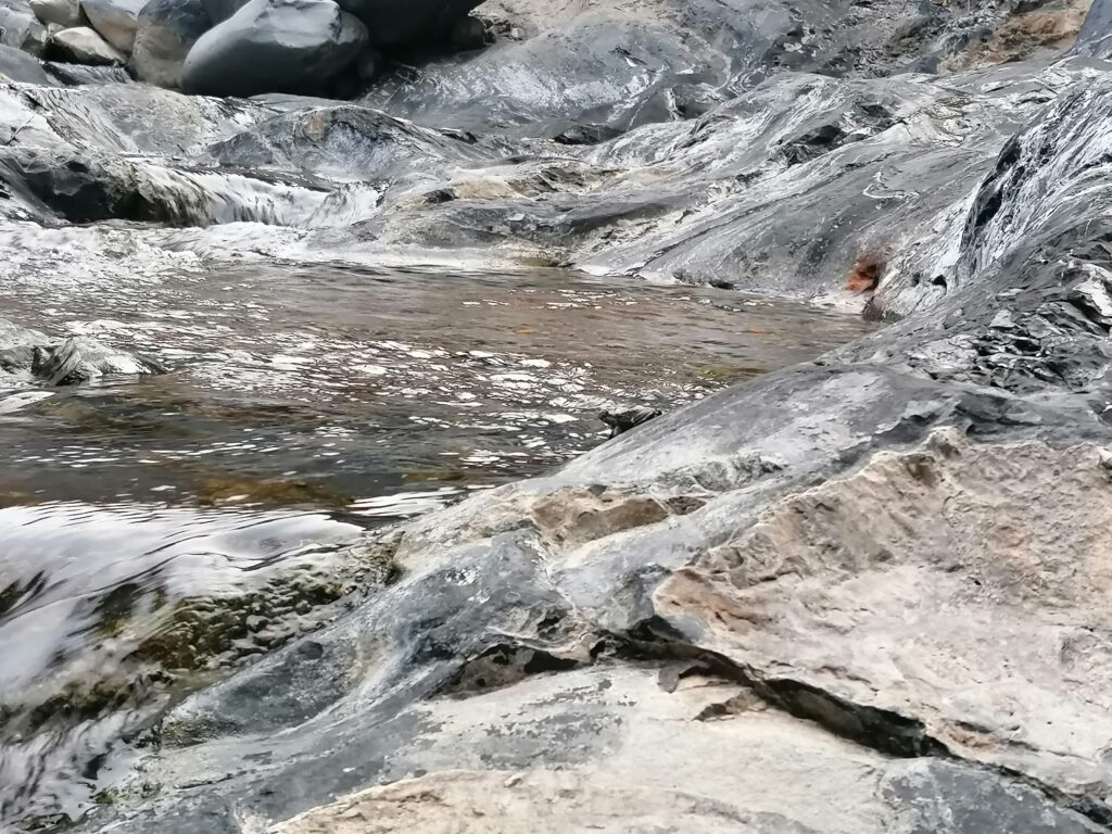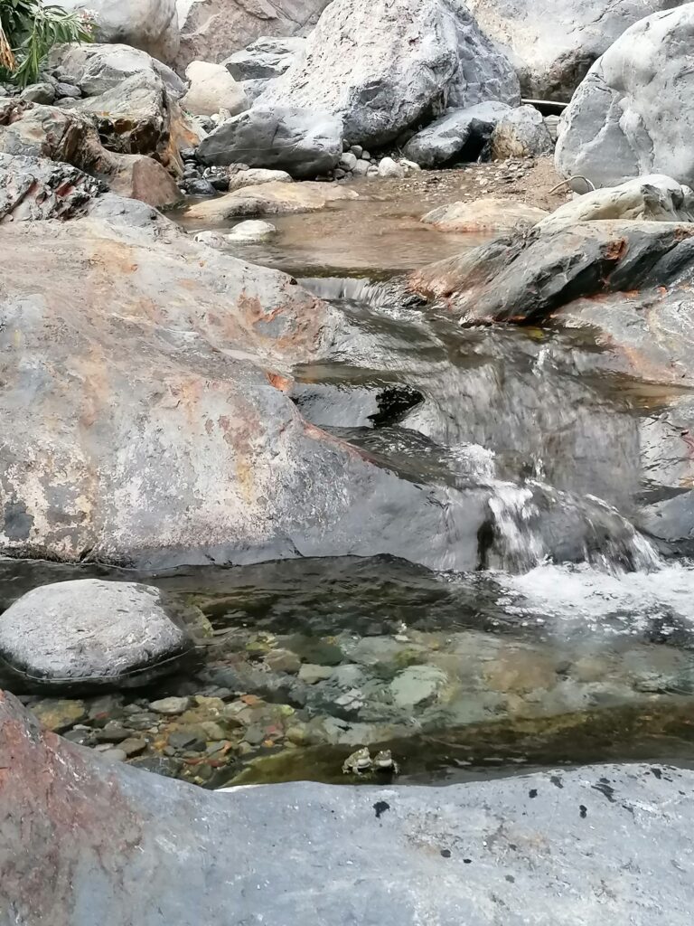 Als wir uns noch länger mit der Route beschäftigen, YouTube Videos von den Offroad-Adventuren anschauen gibt es aber dann doch noch einen Lichtblick: Anscheinend liegt das schwerste Stück der Straße hinter uns. Vor uns sollte noch etwas Piste liegen, aber es sollte hauptsächlich noch ein paar 100hm weiter bergab bis in ein Flußbett gehen, was dann aus dem Tal herausführen sollte. Das beruhigte wenigstens unsere größte Angst, an einer steilen Kurve stecken zu bleiben und rückwärts den Berg hinabrollen zu müssen um neuen Schwung zu holen, bzw. zu schwer zu sein um die Steigung überhaupt zu packen. Auch würde es bedeuten, wir müssten über eine solche Straße keinen 2000hm Pass mehr erklimmen.