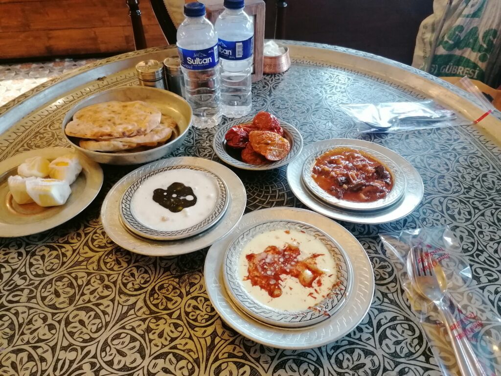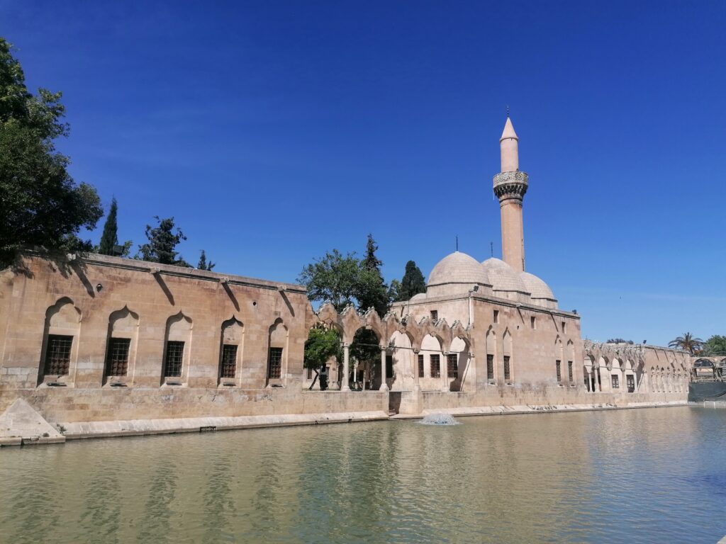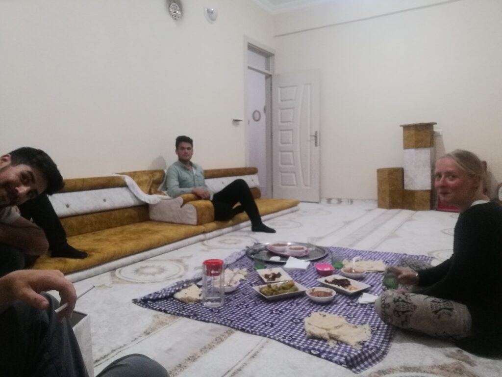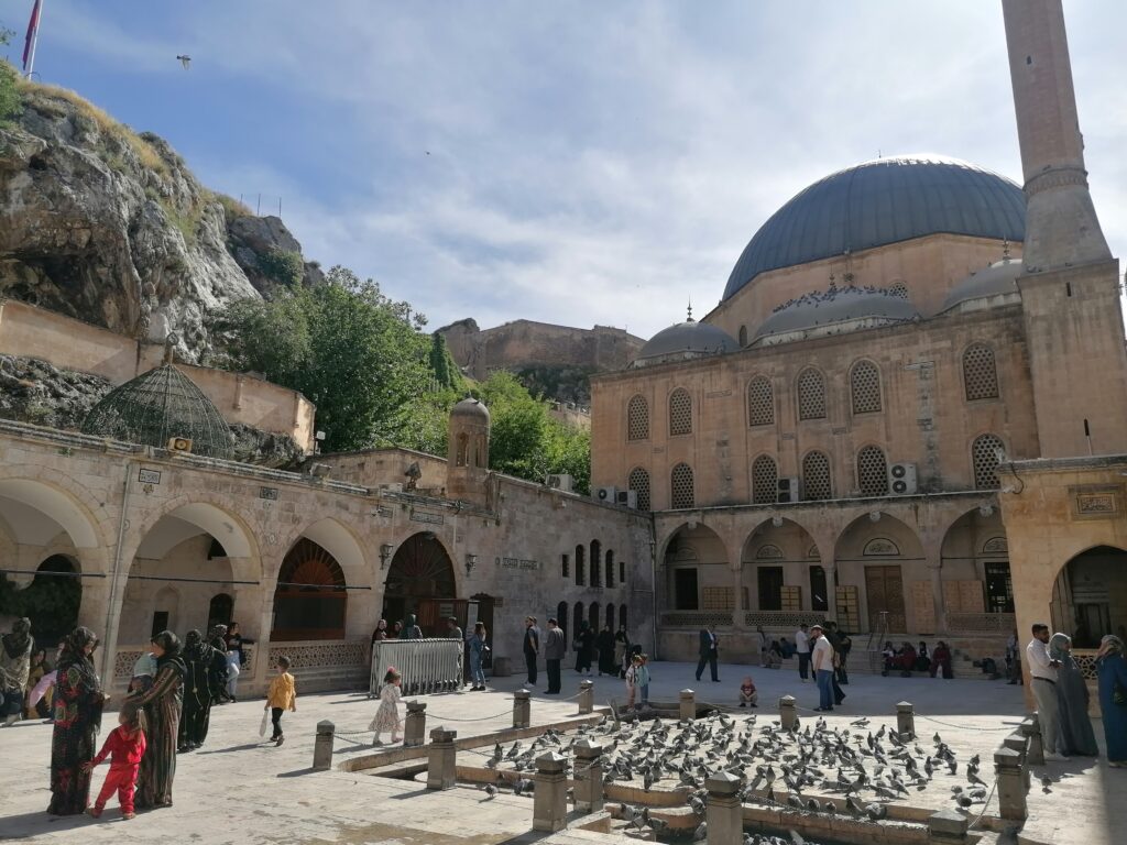 In Sanliurfa besuchen wir die 5. (?) heiligste Pilgerstädte des Islam. Hier soll Abraham ins Feuer geworfen worden sein. Gott / Allah verwandelte daraufhin das Feuer in Wasser und die Brennscheite in Fische, die sich bis heute zahlreich und durch die zahlreichen Pilger wohlgenährt in den Becken tummeln. Wir streunen durch die Stadt und in den Basar in eine Karawanserei bevor wir zu unserem Standplatz außerhalb zurückkehren. Als wir unweit von dort einem Kurden Starthilfe geben, werden wir natürlich prompt zum Essen eingeladen. Wir nehmen an und besuchen Keskinn und seine Familie zum Abendessen.