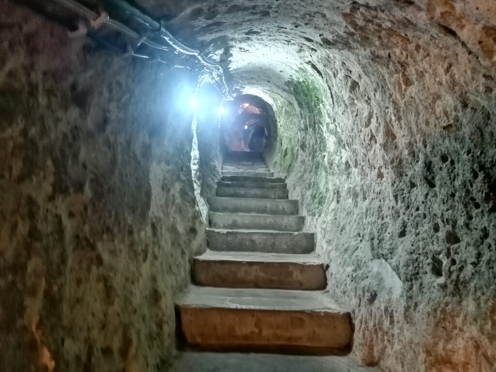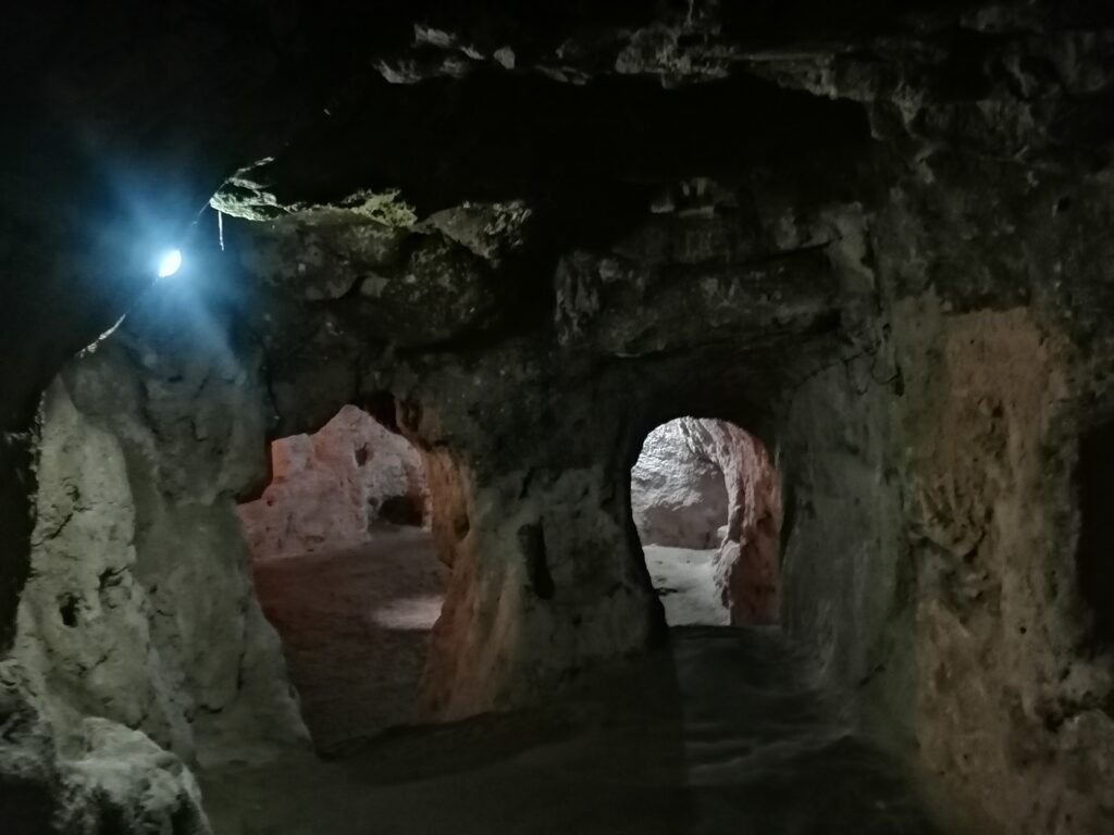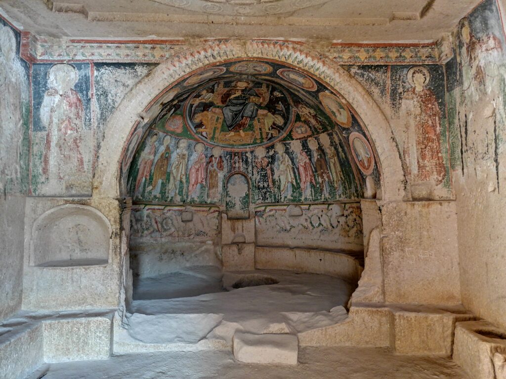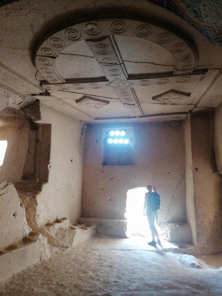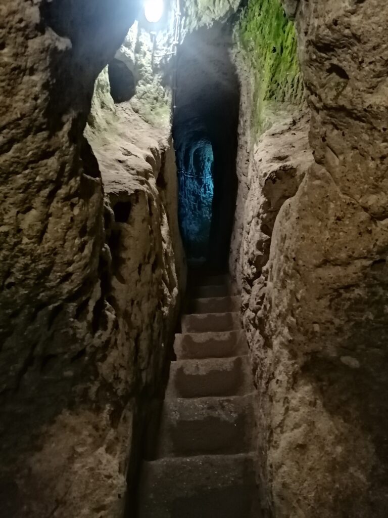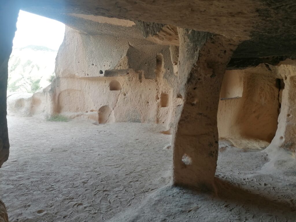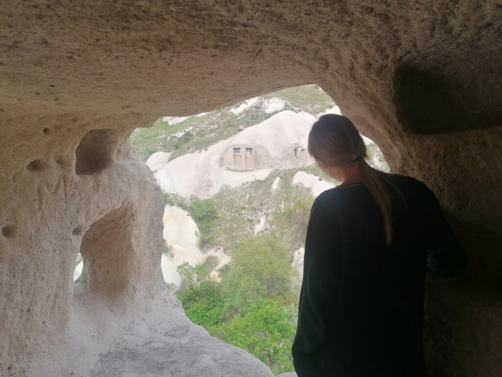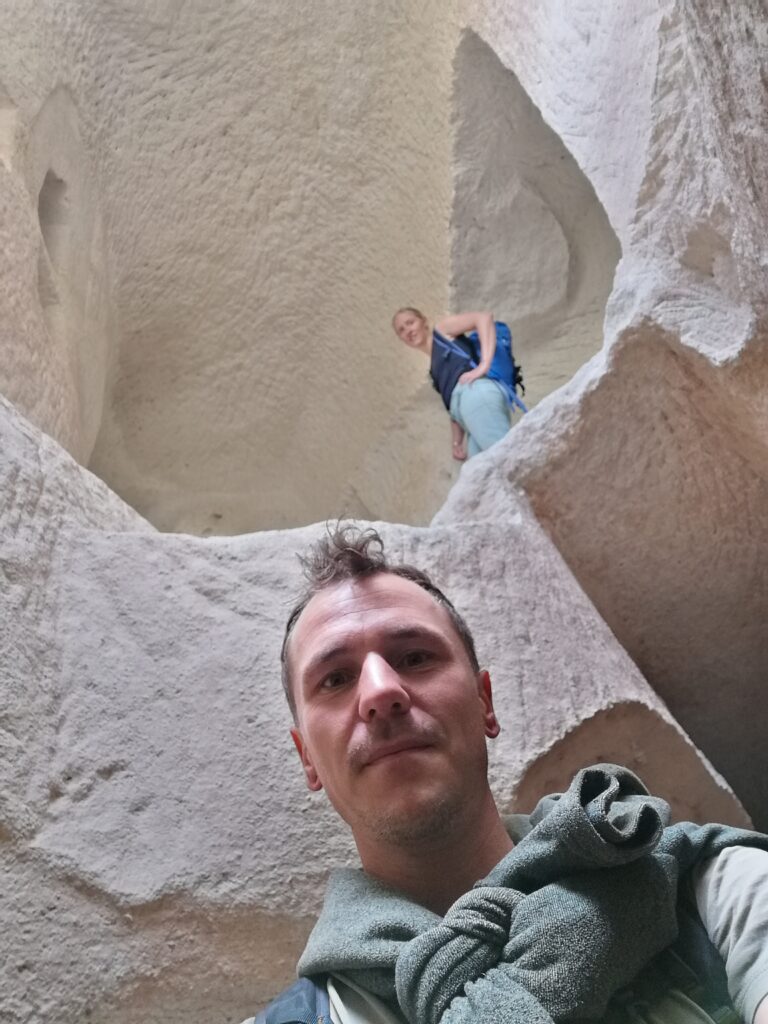 Es geht noch etwas weiter in Richtung Westen zu den berühmten Sandsteinbauten Kappadokiens. Bevor wir dort ankommen legen wir noch einen Zwischenstopp in Derinkuyu ein, wo sich eine alte unterirdische Höhlenstadt befindet. Bis zu 20 000 Menschen sollen in dieser Unterschlupf finden können. Für Besucher sind nur ca. 50 % überhaupt zugänglich und trotzdem kommen uns die, einem Ameisenbau gleichenden. Höhlengänge riesig vor.