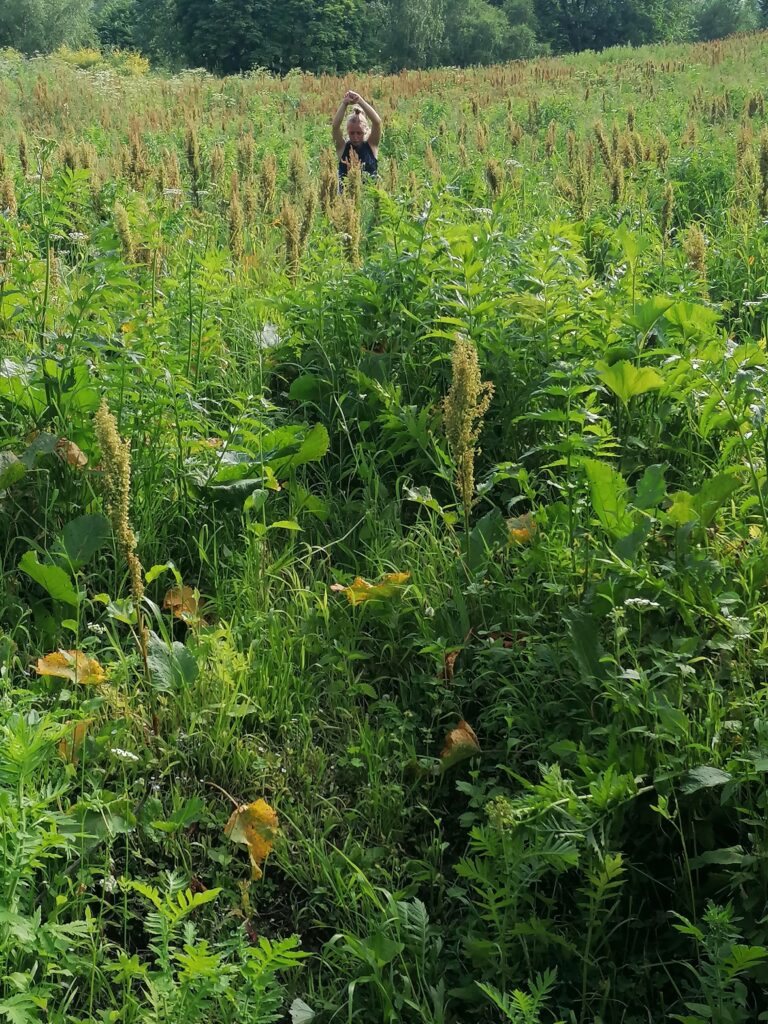 Der untere Teil auf dem “Weg” hörte spätestens auf seinen Namen zu verdienen, als wir nach dem ersten Aufstieg plötzlich vor einer meterhohen “Blumenwiese” standen. Wir kämpften uns durchs Dickicht, wo wir den Boden voller Pflanzen kaum erkannten, zum nächsten Wegweiser. Das unter den “Blumen” auch zahlreiche Brennesseln standen erfühlten wir recht schnell an unseren nackten Beinen, die in kurzen und in Julie’s Fall sehr kurzen Hosen steckten. Ohne die wäre die Hitze aber wohl auch kaum erträglich gewesen.