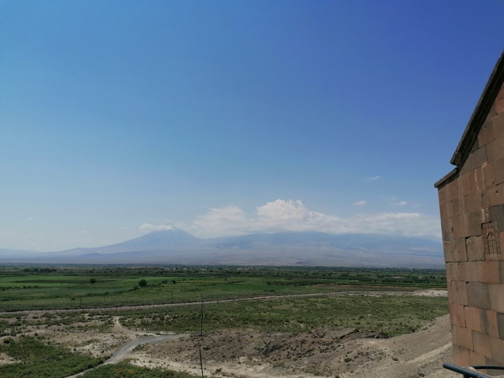 Chor Virap ist quasi das Gegenstück zum Ishak Pasha Palace auf türkischer Seite. Wir sehen den riesigen und kleinen Arrarat leider etwas wolkenverhüllt, aber doch in “greifbarer” jedoch gleichzeitig unerreichbarer Nähe. Die Grenze zwischen Türkei und Armenien ist für Touristenverkehr verschlossen. Wohl auch weil Armenien und die Türkei Anspruch auf den berühmten Berg erheben.