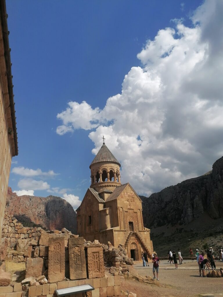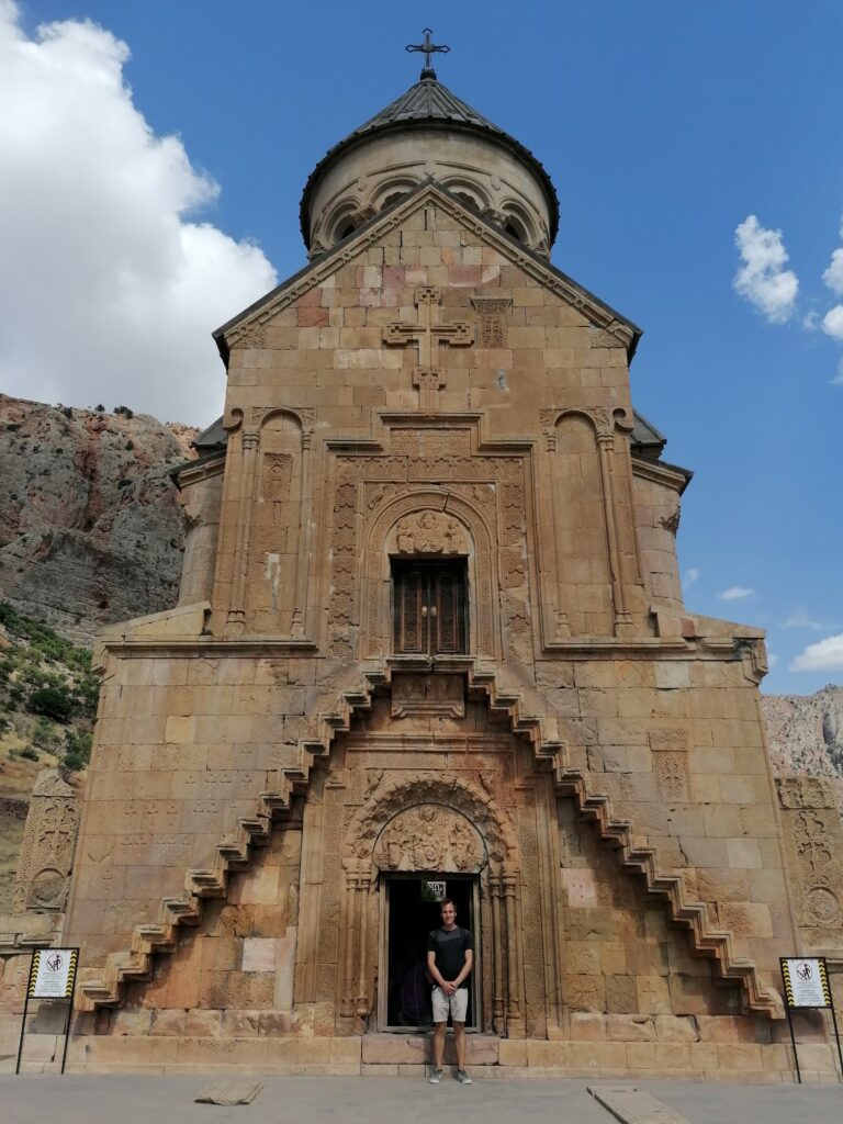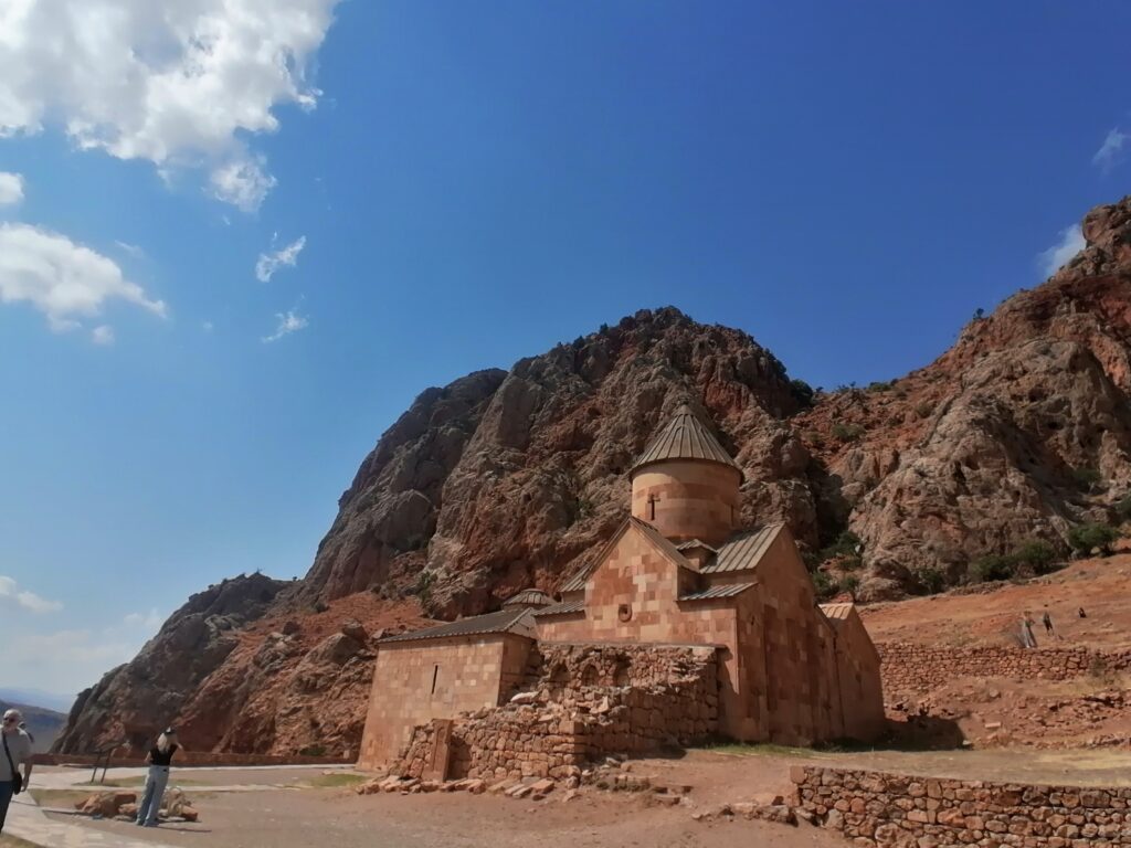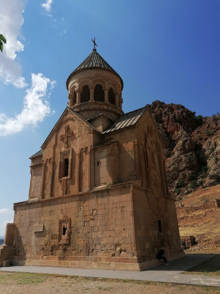 Eines der schönsten Klöster Armeniens finden wir in Norawank. Das liegt wohl einerseits an dem guten Zustand des Gebäudes, andererseits an der schönen rot, grünen Felslandschaft, die das Kloster umgibt. Man soll hier wohl auch Klettern können, was wir gerne ausprobieren würden. Jedoch stoppen uns ernorme Hitze und die Tatsache, das wir schon wieder ziemlich untrainiert sind und wohl erstmal 2 Wochen brauchen würden um wieder fit zu werden.