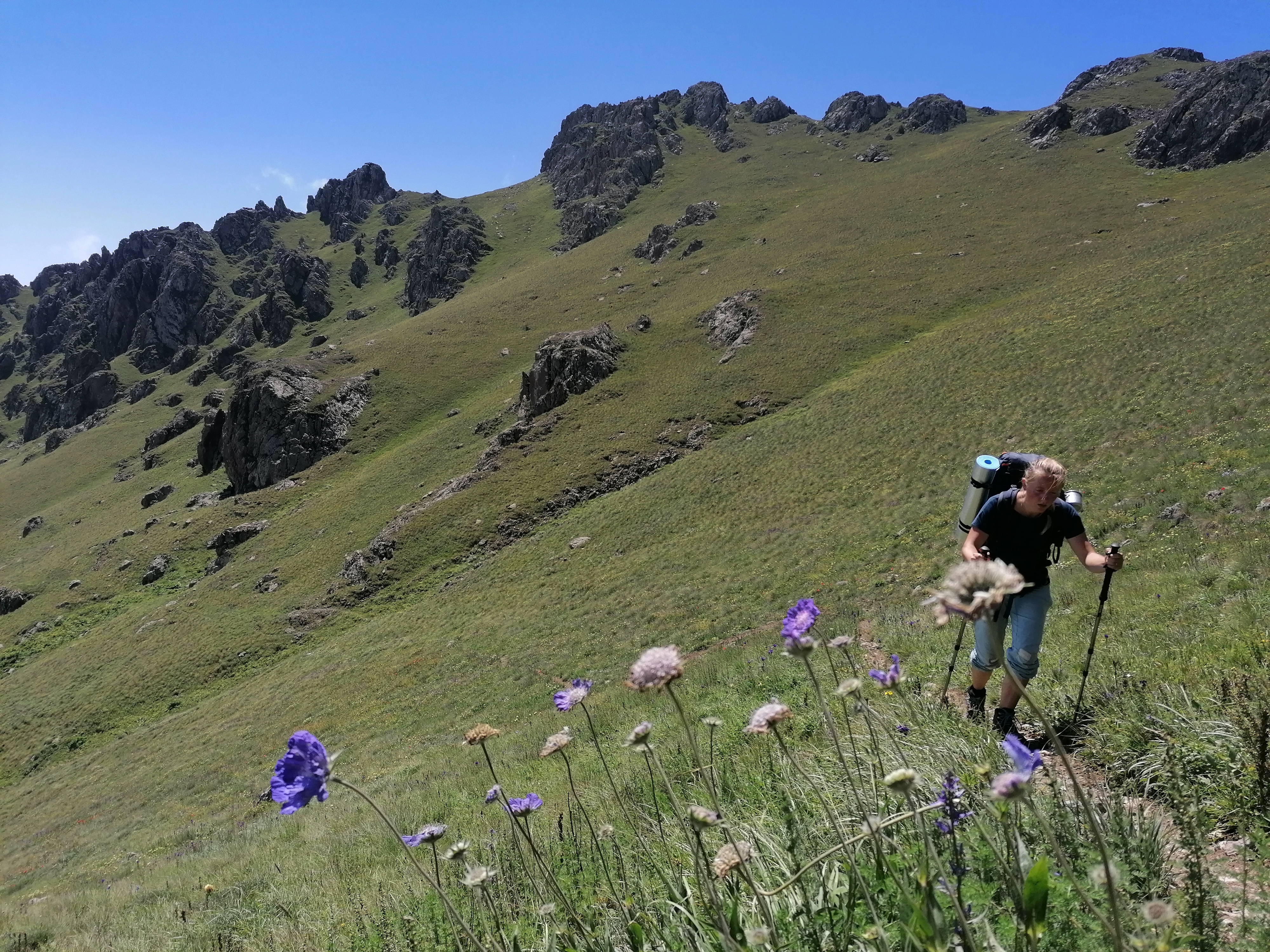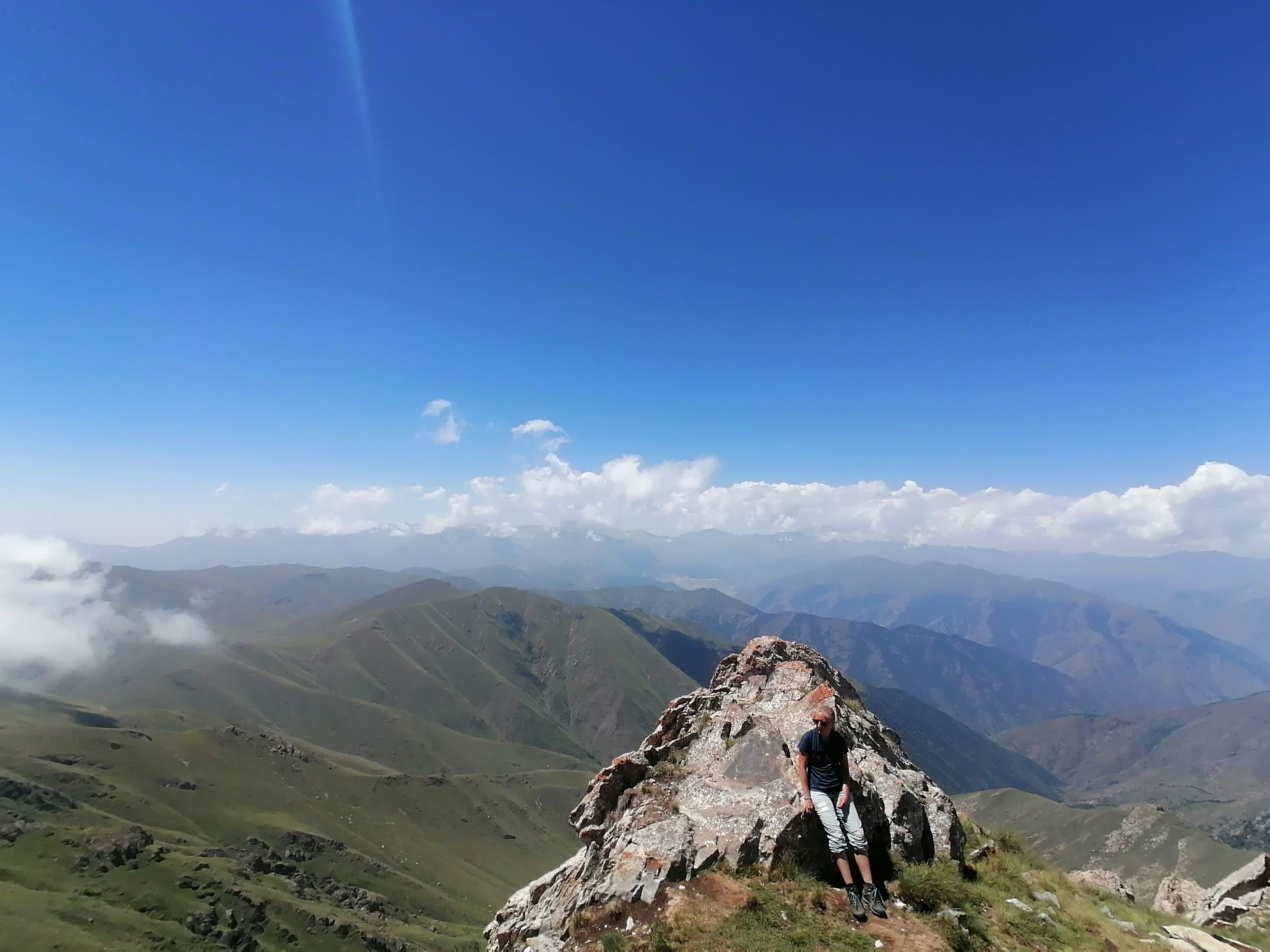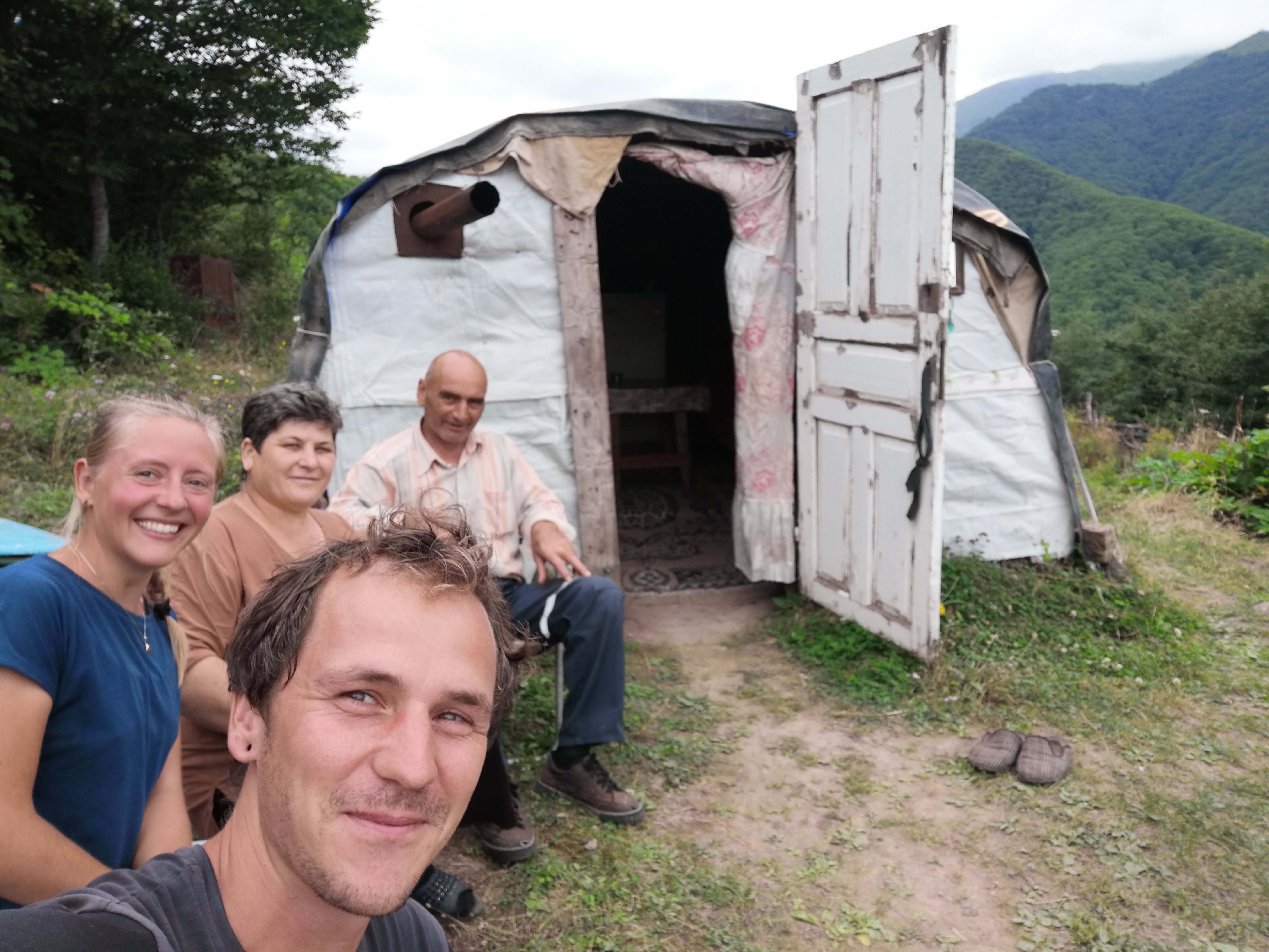 Als Vorbereitung für unsere geplante Kazbek Besteigung sowie um das tolle Gebirge Armeniens zu erkunden packen wir wieder das Zelt ein und besteigen den Khustup. Dabei treffen wir neben einem russischen Pärchen und (natürlich) einem Deutschen keine anderen Wanderer sondern nur freundliche Bauern, die uns (natürlich) zum Tee und Essen einladen. Beim Anblick der einfachen Behausungen der Bauern trauen wir uns kaum beim Essen wirklich zuzugreifen, übersteigt der Luxus unseres Campers doch bereits fast den ihrer Wellblechhütten. Ihr Auto haben sie vor kurzem gegen ein Pferd eingetauscht erklären sie uns auf russisch, was Julie glücklicherweise zumindest teilweise versteht. So leben sie, zumindest im Sommer, auf ihrem Feld mit ein paar Hunden und Kühen.