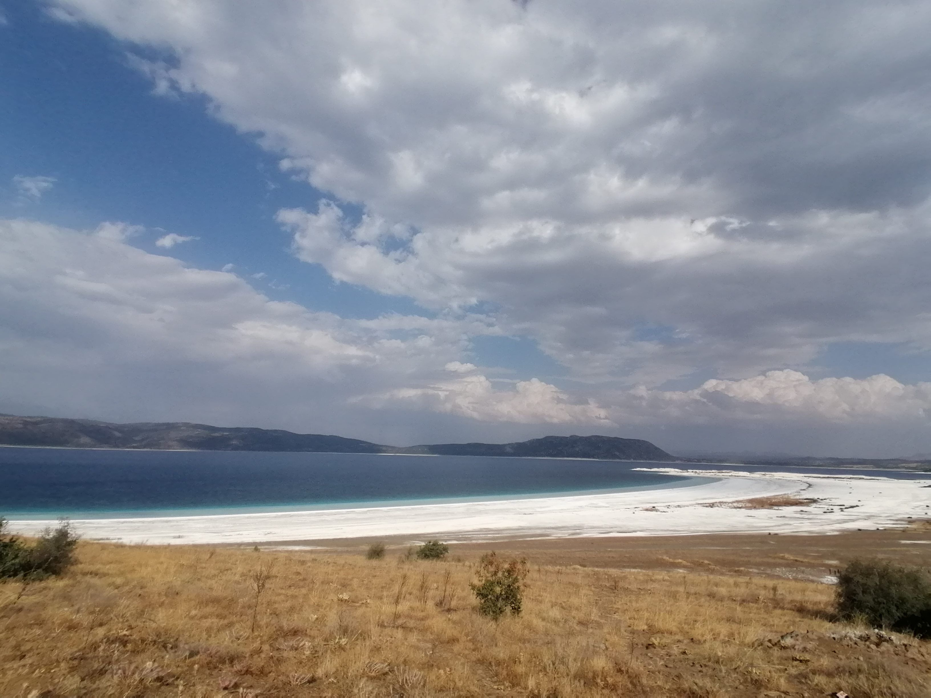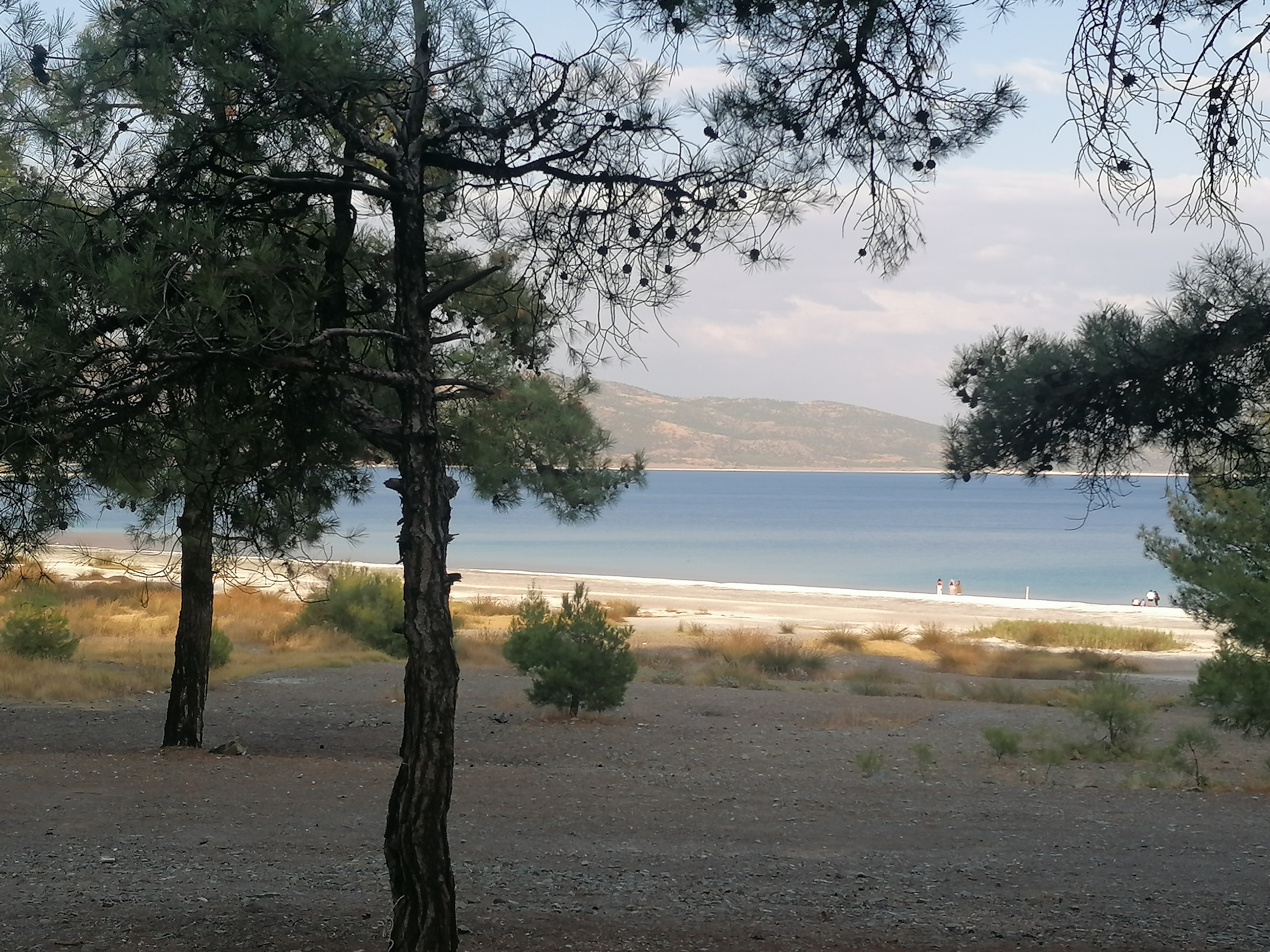 Als Alternativprogramm fahren wir noch zum Salda Gölu, einem Kratersee, der durch magnesienhaltiges Gestein weiße Strände und eine unglaublich schöne Farbe zu bieten hat. Wir genießen auch, dass im Gegensatz zur heißen, völlig überfüllten Mittelmeerküste hier angenehmen Temperaturen herrschen und deutlich weniger Leute zu gegen sind. Warum der See dann doch nicht so zum Baden geeignet ist erfahren wir, als wir beim ersten Versuch erstmal hüfttief im schlammigen Strand versinken und nur mühsam wieder herauskommen. Zudem warnen uns die Einheimischen, von Strömungen in der Mitte des Sees, denen jährlich mehrere Leute zum Opfer fallen. An den Stellen an welchen man trotzdem gut Schwimmen kann genießen wir das tolle, fast poolartige Wasser bis wir erfahren, dass das Schwimmen am See weitesgehend verboten ist. Für uns bietet der ruhige, schöne See dennoch noch einmal eine letzte Gelegenheit unser Sabbatical ausklingen zu lassen bevor es weiter in Richtung Istanbul geht..