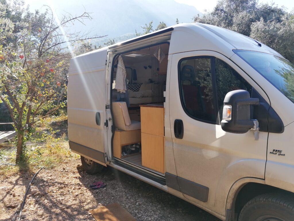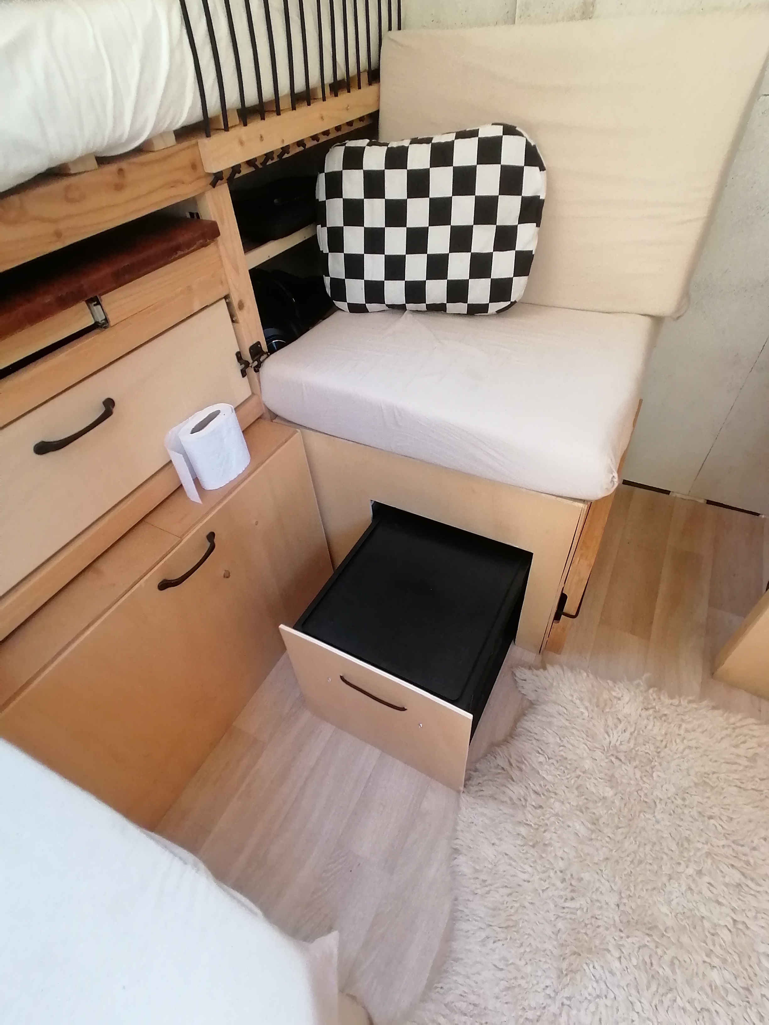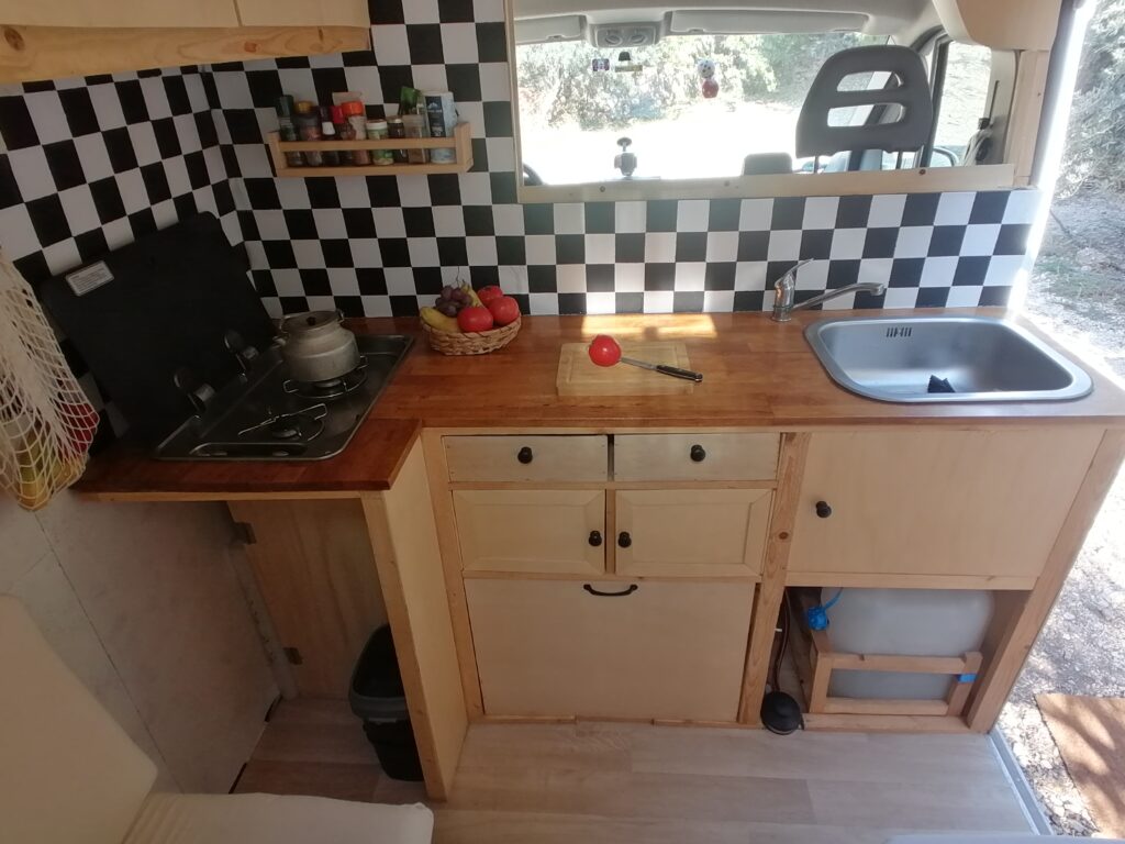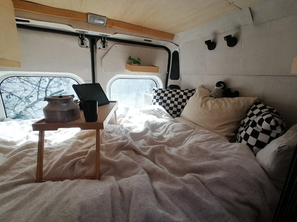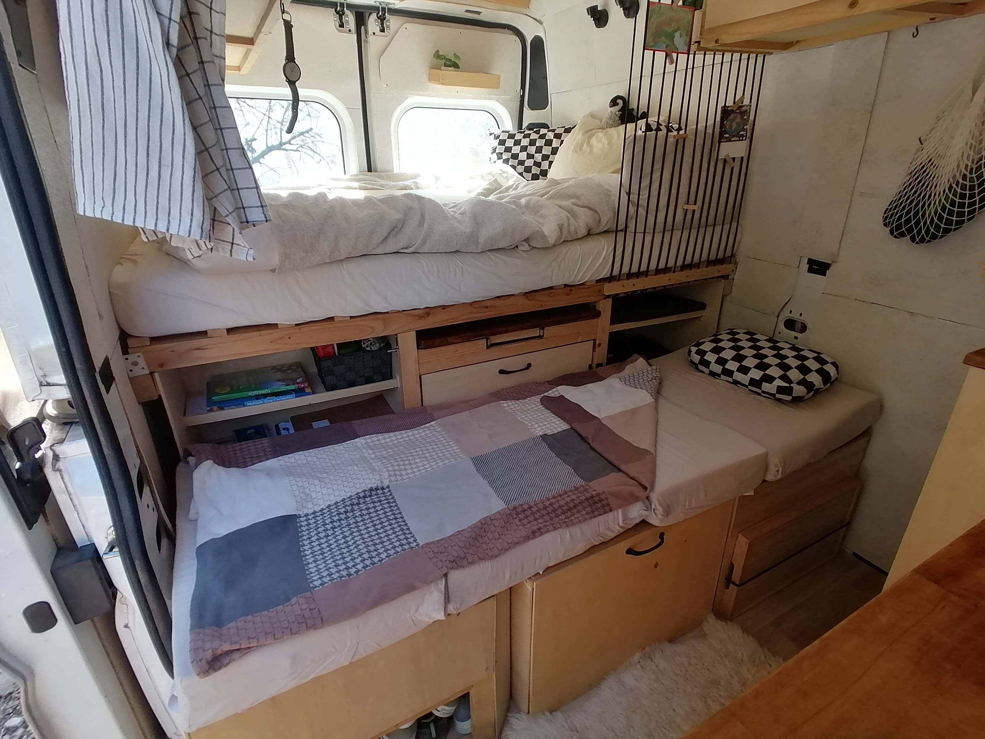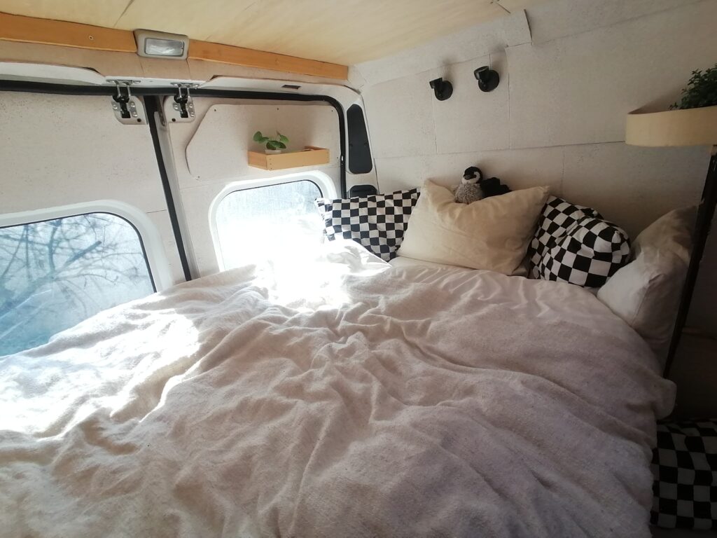 Unterhalb des Betts befindet sicher der Kofferraum mit allem, was man sonst noch so zum Vanlifen braucht.