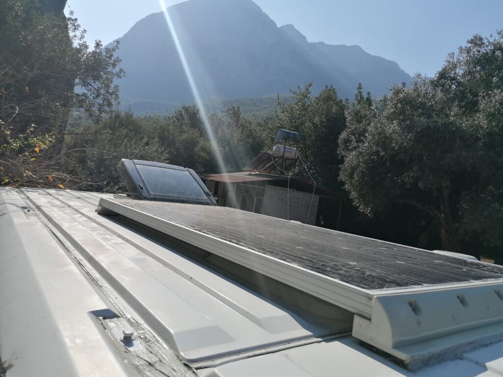 Die Bordbatterie wird über Lichtmaschine und ein 200Wp Solarmodul versorgt..