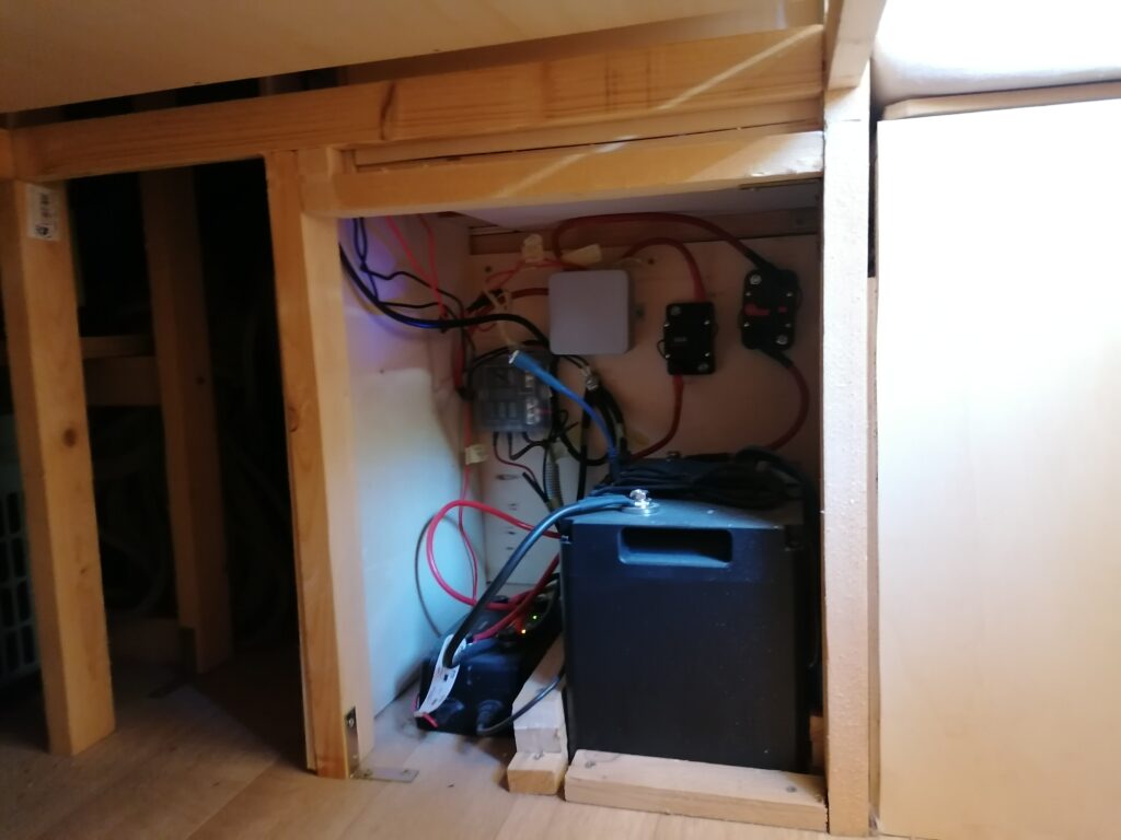 ..der Laderegler lädt die Batterie (100Ah, LiFePo) und der Verteilerkasten verteilt den Strom an die verschiedenen Verbraucher..